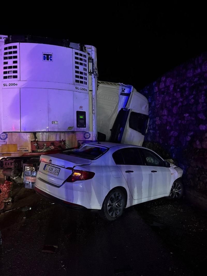 Edinilen bilgilere göre, O.D. (19) idaresindeki 32 AAK 364 plakalı otomobil, C.K.'nin (56) kullandığı 33 AZV 518 plakalı otomobil ve plaka bilgisi alınamayan tır çarpıştı.