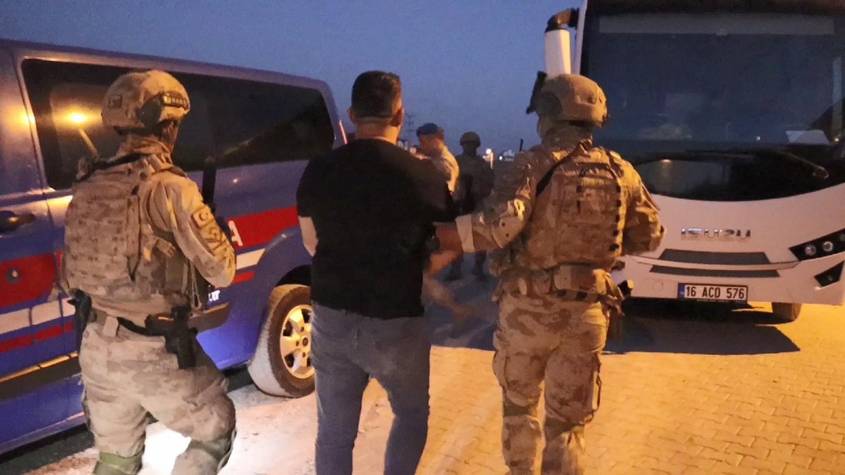 Toplam 57 adrese 450 jandarma personeli ile yapılan baskınlarda 1'i kamu görevlisi, 34 şüpheli gözaltına alındı.
