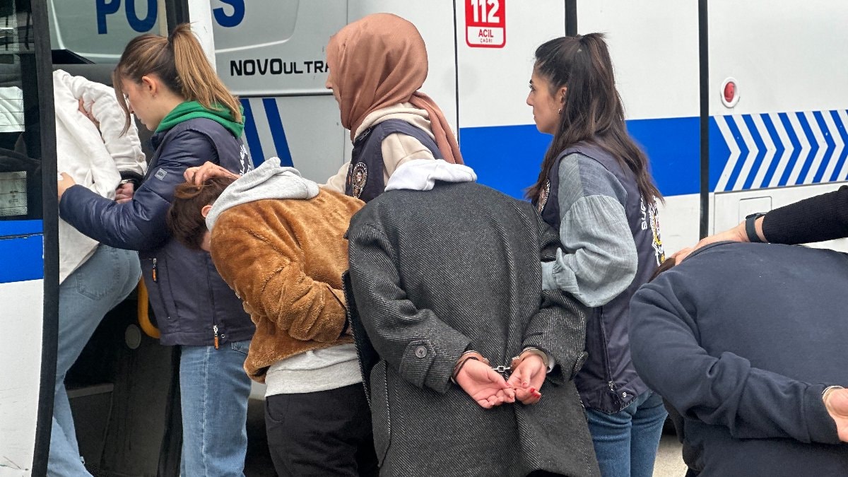 Operasyon sonrası kıskıvrak yakalanan çete üyeleri, Bursa İl Emniyet Müdürlüğü'ne getirildi. Şüphelilerin emniyetteki işlemleri sürüyor.