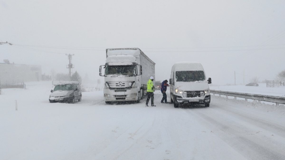 Bursa-Yalova karayolu, kar yağışı ve tipi nedeniyle karşılıklı olarak, ağır taşıt trafiğine kapatıldı.