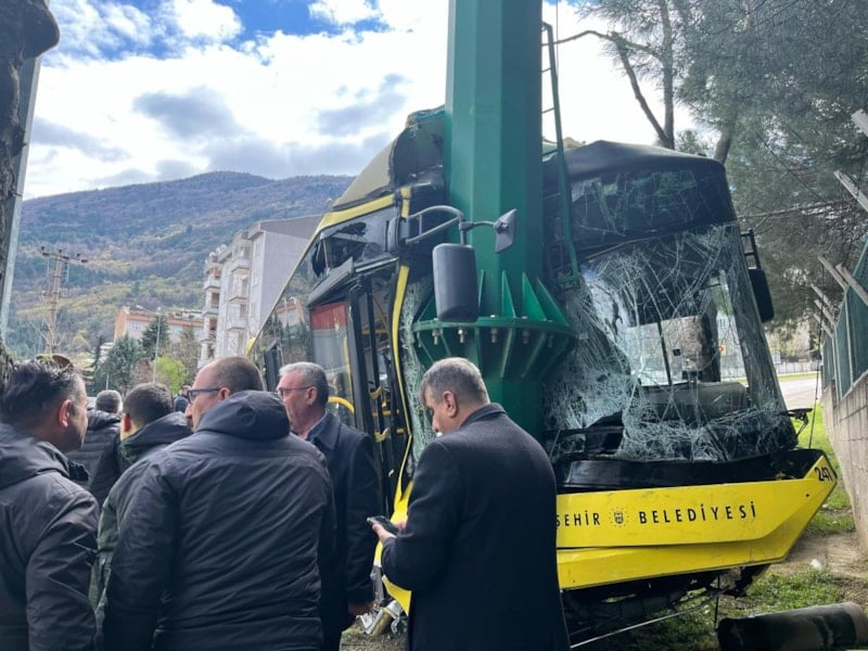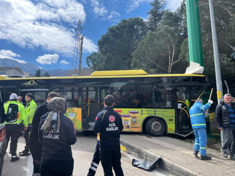 Yıldırım ilçesinde freni patlayan bir belediye otobüsü, önce park halindeki araca sonra da karşı yöne geçip bir direğe çarptı.