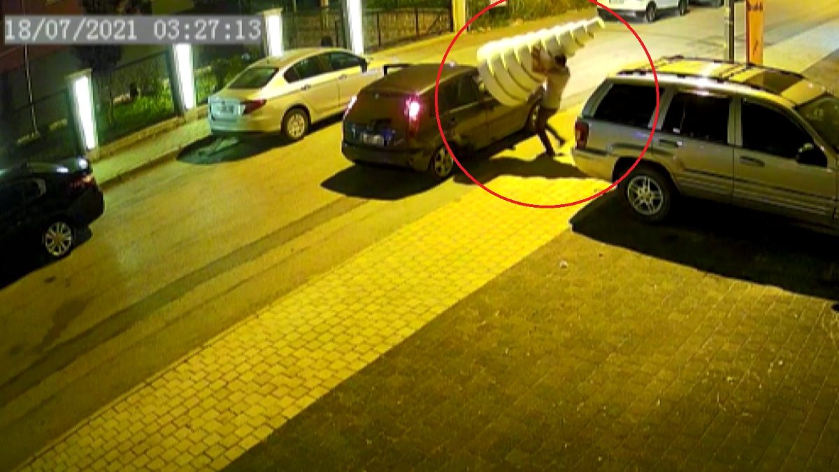 Görüntülere, şüphelilerin pastayı otomobilin tavanına koyduğu ve otomobille uzaklaştığı anlar yansıdı.