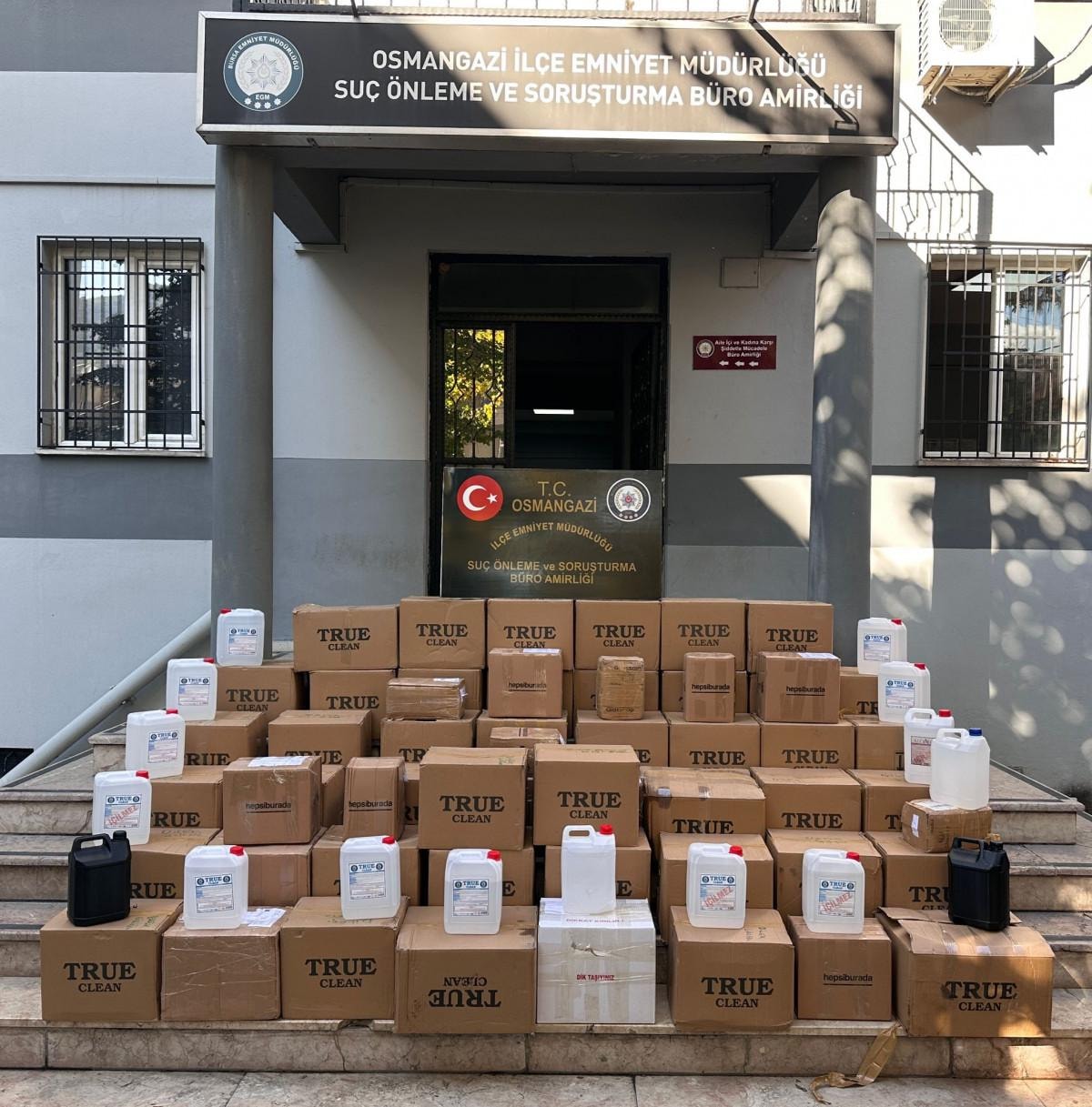 Osmangazi İlçe Emniyet Müdürlüğü Osmangazi Suç Önleme ve Soruşturma (SÖS) Büro Amirliği ekipleri, Alipaşa Mahallesi'ndeki bir depoda kaçak alkol imalatı yapıldığı bilgisine ulaştı.