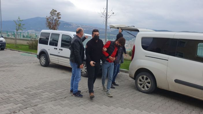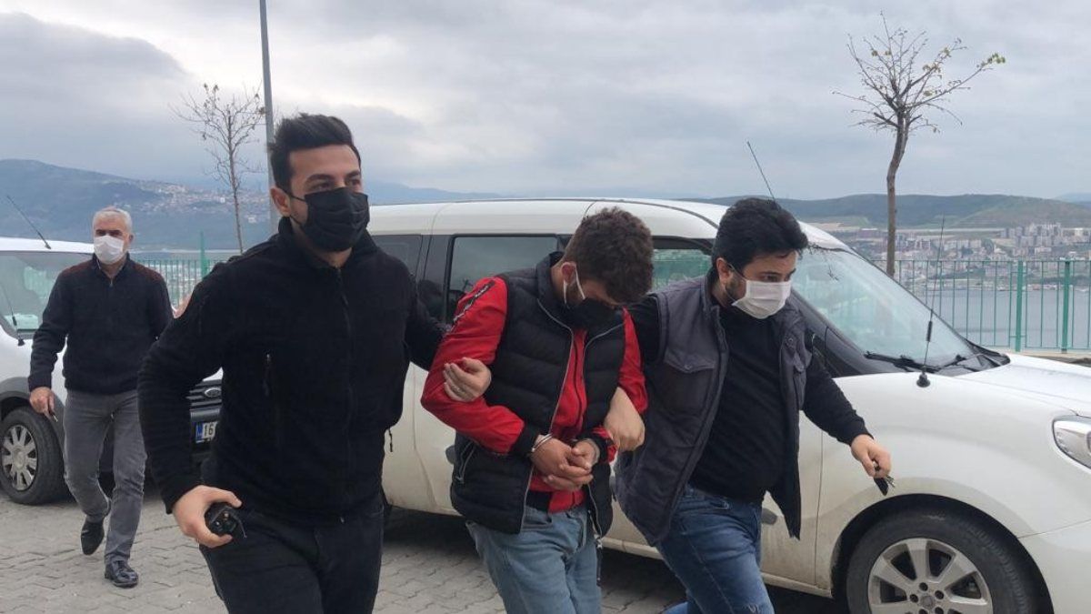 Gözaltına alınan şüphelin Gemlik İlçe Emniyet Müdürlüğü’ne götürüldü.