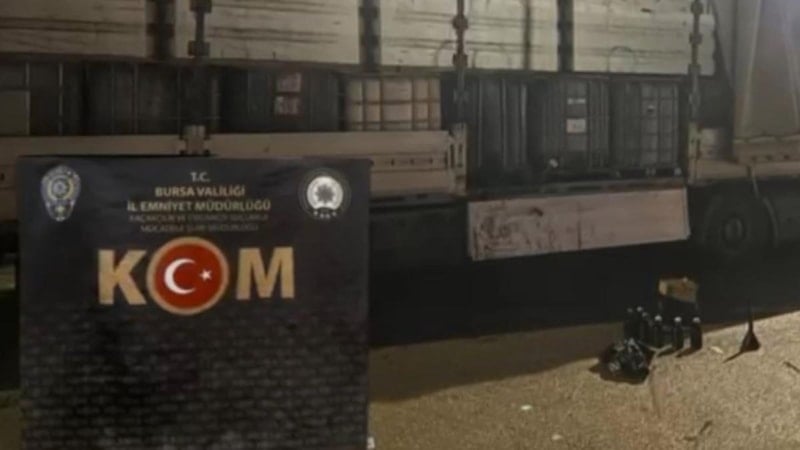 Bursa'da düzenlenen operasyonda tıra yüklenmek üzere olan 26 bin 140 litre kaçak akaryakıt bulundu. Olayla ilgili 2 şüpheli gözaltına alındı.