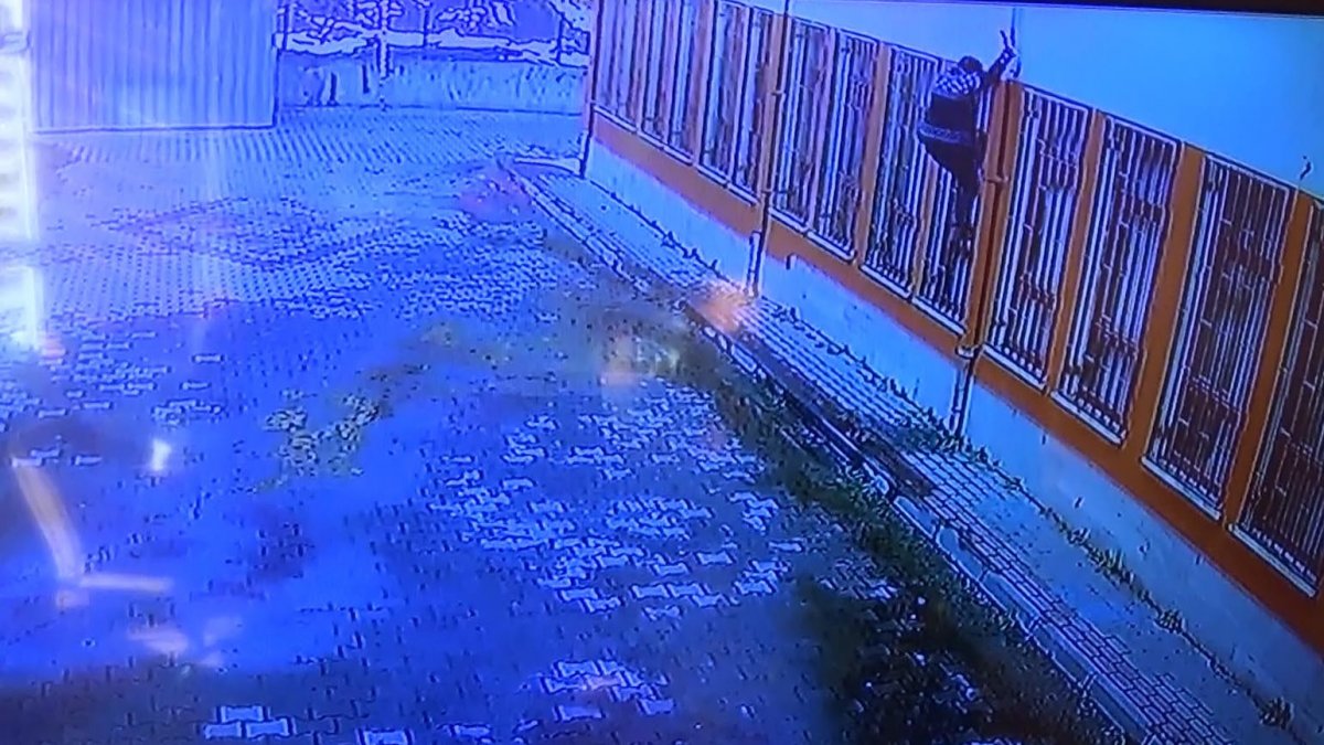 Çocukların ikinci katın camından boruya tutunarak örümcek adam gibi inerek gitmesi anbean kameraya yansıdı.