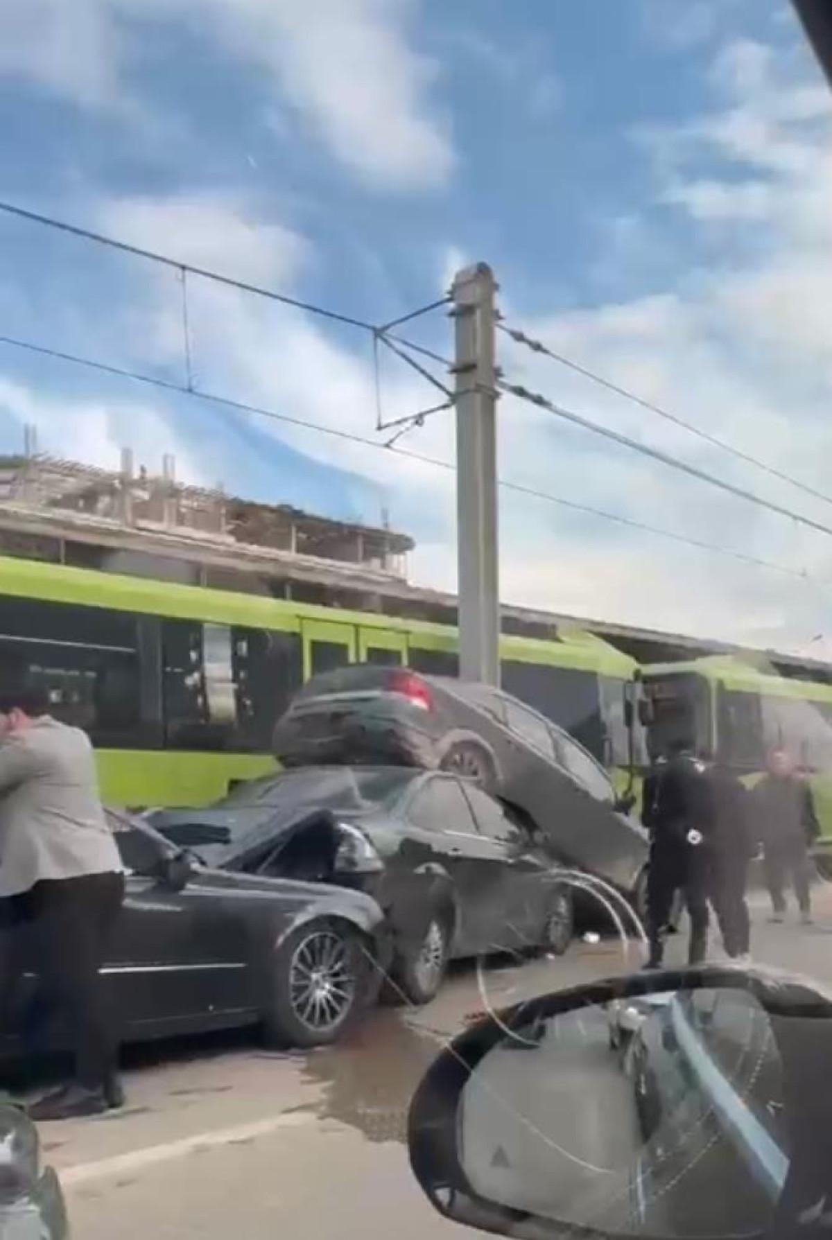 Polis ekiplerince olayla ilgili tahkikat başlatılırken, araçların birbirinin üzerine çıktığını gören vatandaşlar şaşkınlık yaşadı.