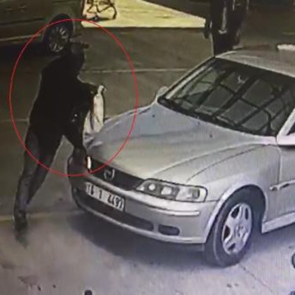 Kimliği belirsiz kişi ise elindeki poşetlerle sürücü koltuğuna geçip, otomobille kaçtı. Bu anlar, iş yerinin güvenlik kamerasınca saniye saniye kaydedildi.