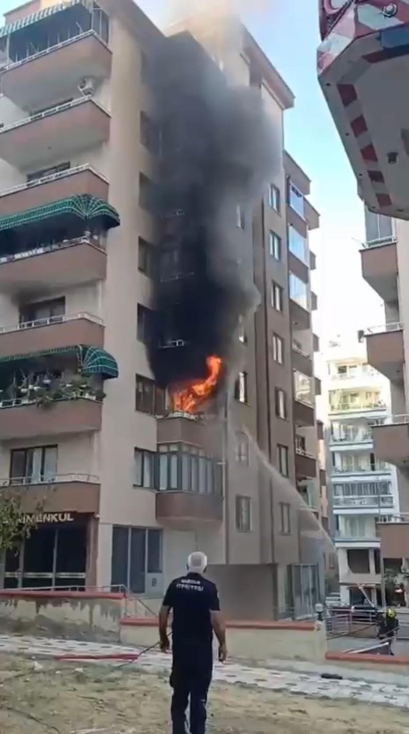 Alevlerin balkonu sarmasıyla telaşa kapılan apartman sakinleri aşağı inerken, ihbar üzerine olay yerine itfaiye ekipleri sevk edildi.