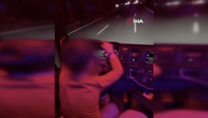Bu defa Bursa'da yaşanan olayda, sürücü değil, tırı süren 7 yaşındaki oğlu yürekleri ağza getirdi.