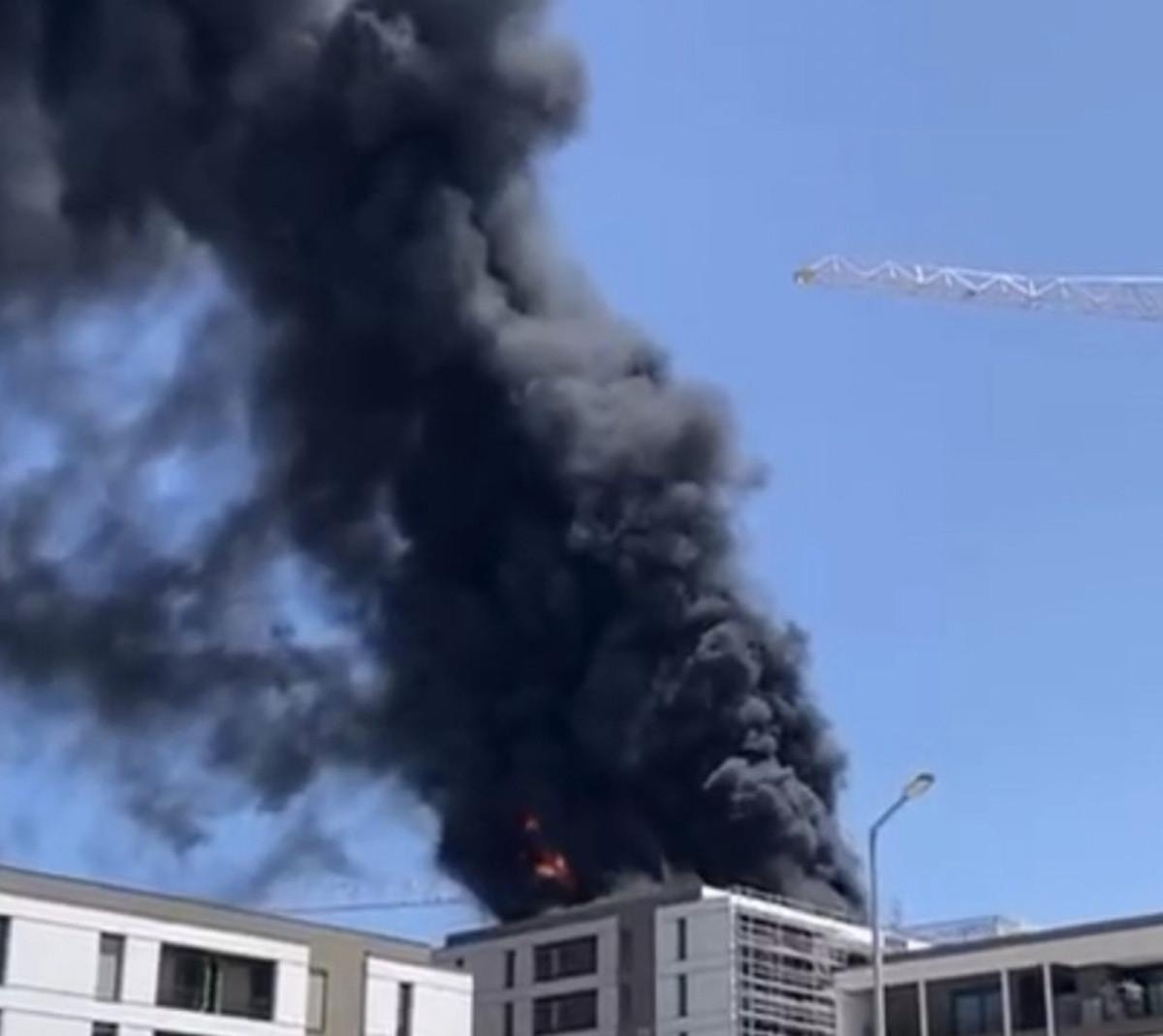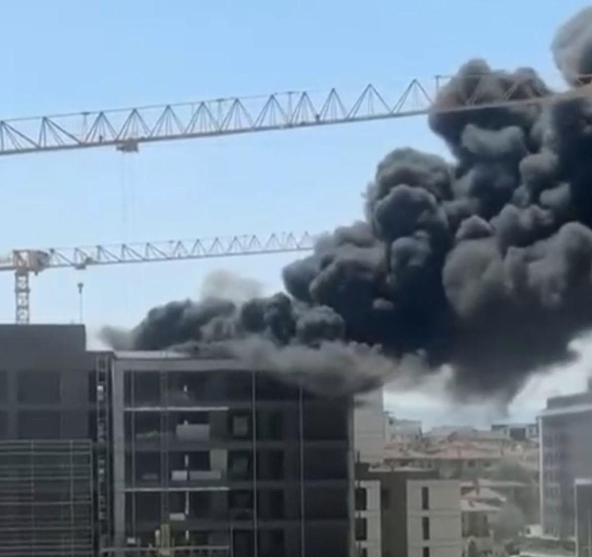 8 katlı inşaatın çatısında çıkan yangın, yürekleri ağza getirdi.