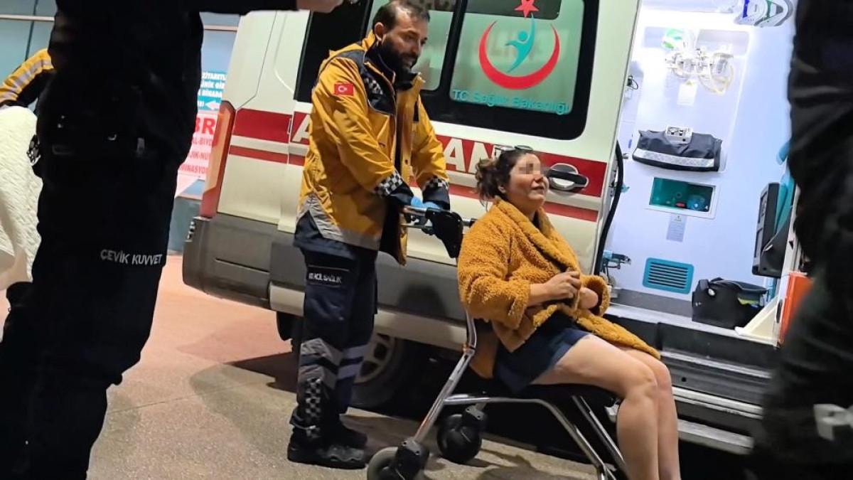 Hastaneye götürülen kadın, sağlık ekiplerine de zor anlar yaşattı.