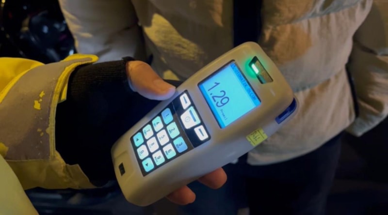 Uzun uğraşlar sonucu alkolmetreye üfleyen Emre E., 1.29 promil alkollü çıktı.