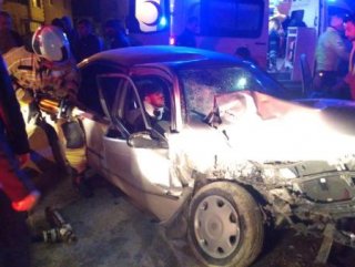 Sürücüsünün kontrolünü kaybettiği otomobil, park halindeki minibüse çarptı. Kazada otomobilde sıkışan 2 kişi ağır yaralandı