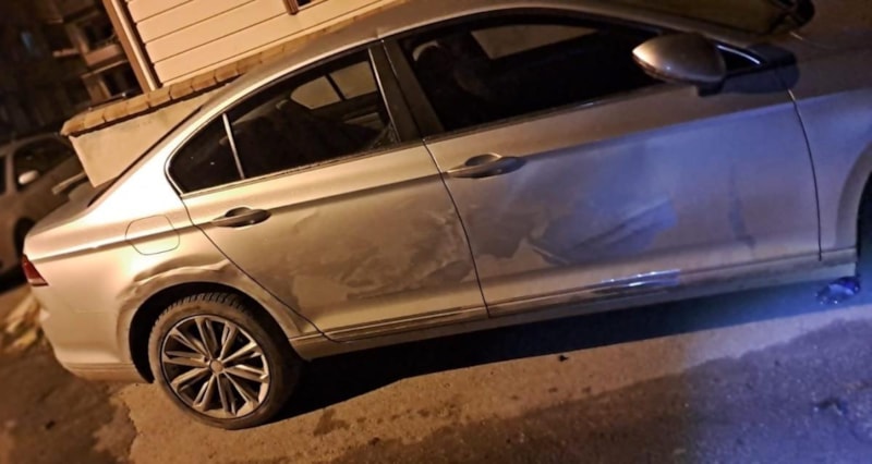 Yine bir araç, park halindeki araçlara çarparak ciddi zarar verdi.