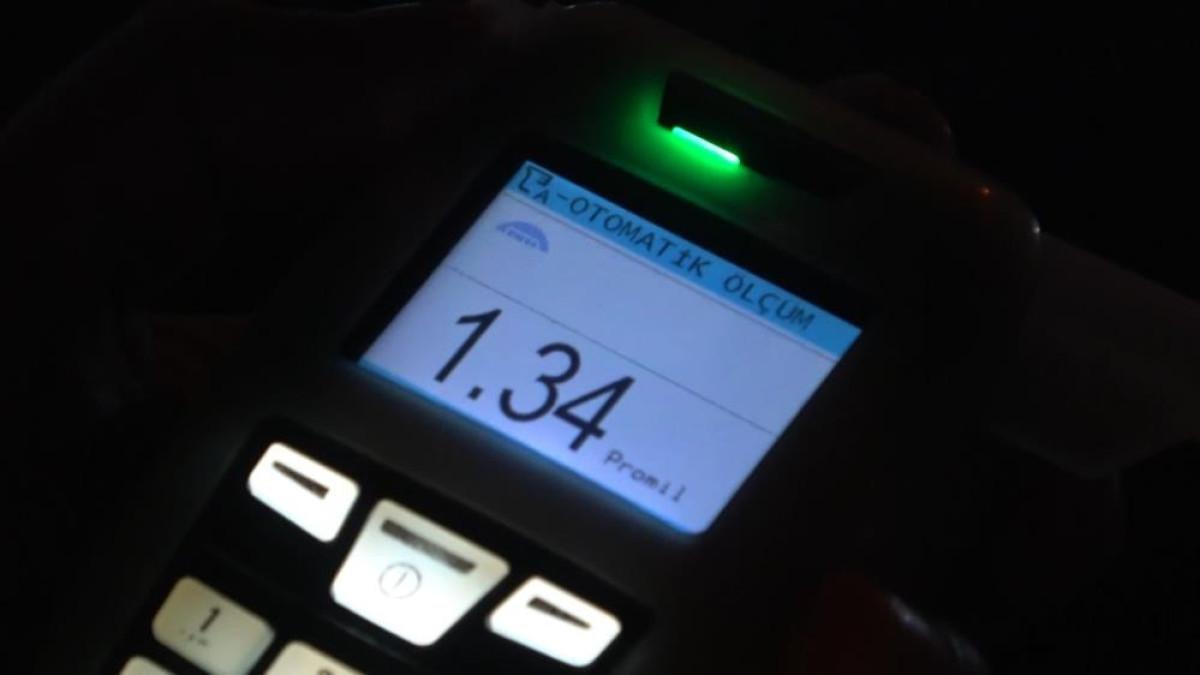 Uygulama noktasına 1.34 promil alkollü takılan 34 ZR plakalı araç sürücüsü Sezgin D.’nin ehliyetine 6 ay el konuldu.