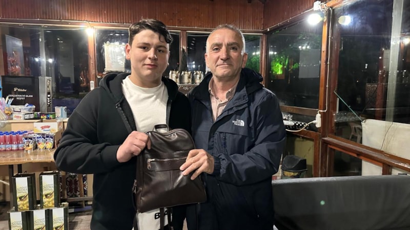Çay bahçesi işletmecisi Bekir Uslu, "İçi para ve altın dolu bir çanta bulduk. İşletmemizde çantanın sahibine kimlik bilgilerinden ulaşarak biraz telefon trafiği sonucunda aileye ulaştık ve arkadaşımızın oğluna teslim ediyoruz." dedi.