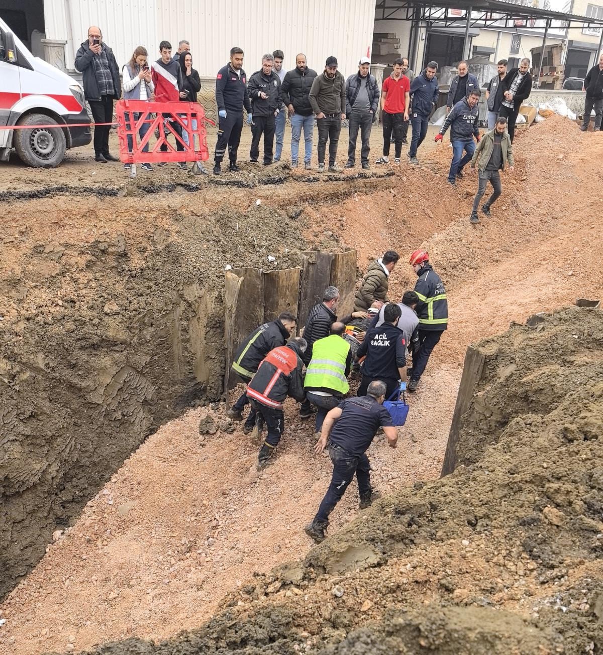 Ekipler, toprak altında kalan işçiyi yarım saat süren çalışmayla yaralı kurtardı.