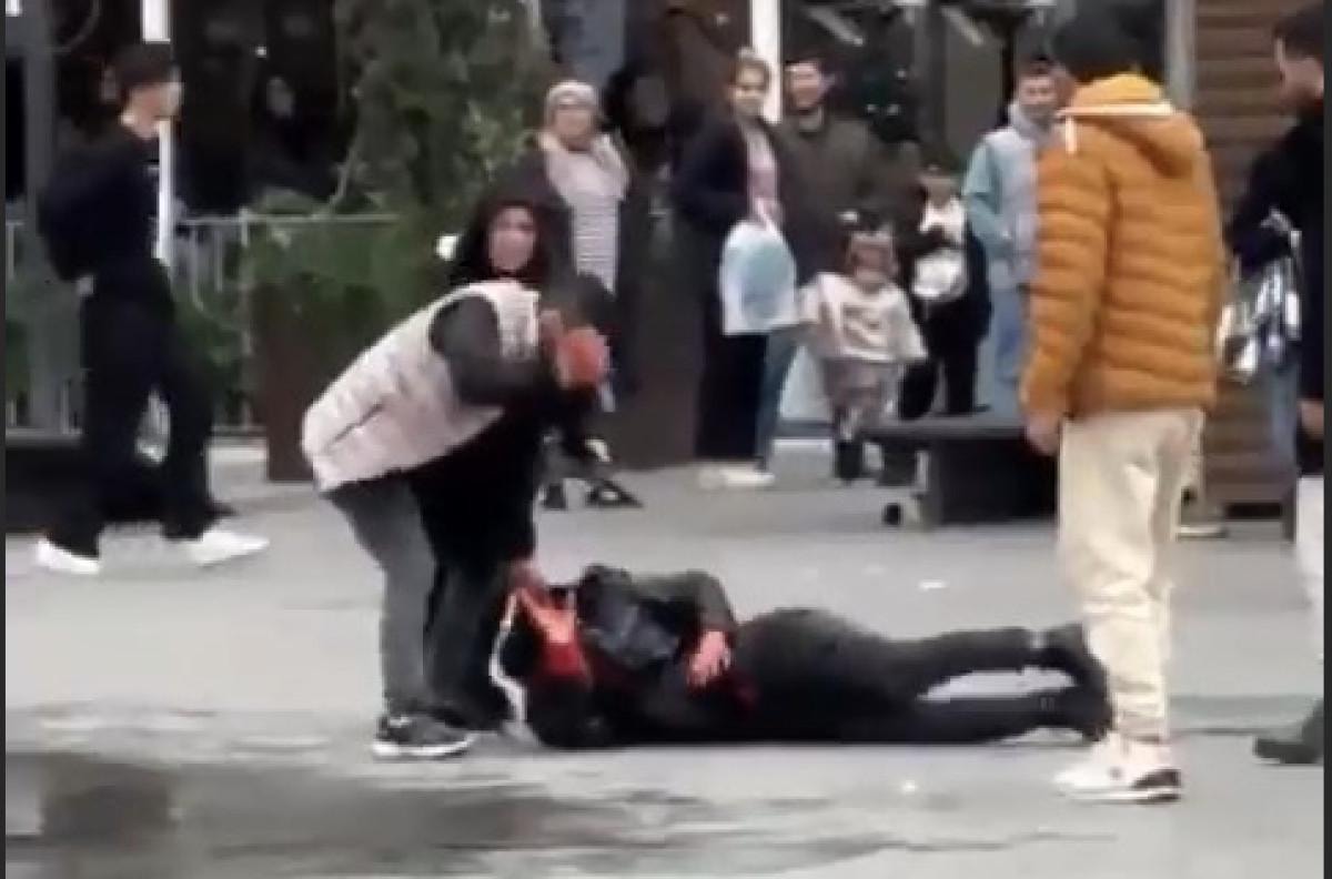 Yaralı adam için ambulans çağrılırken, çevredekiler bıçaklı saldırgana müdahale etmekte zorlandı.