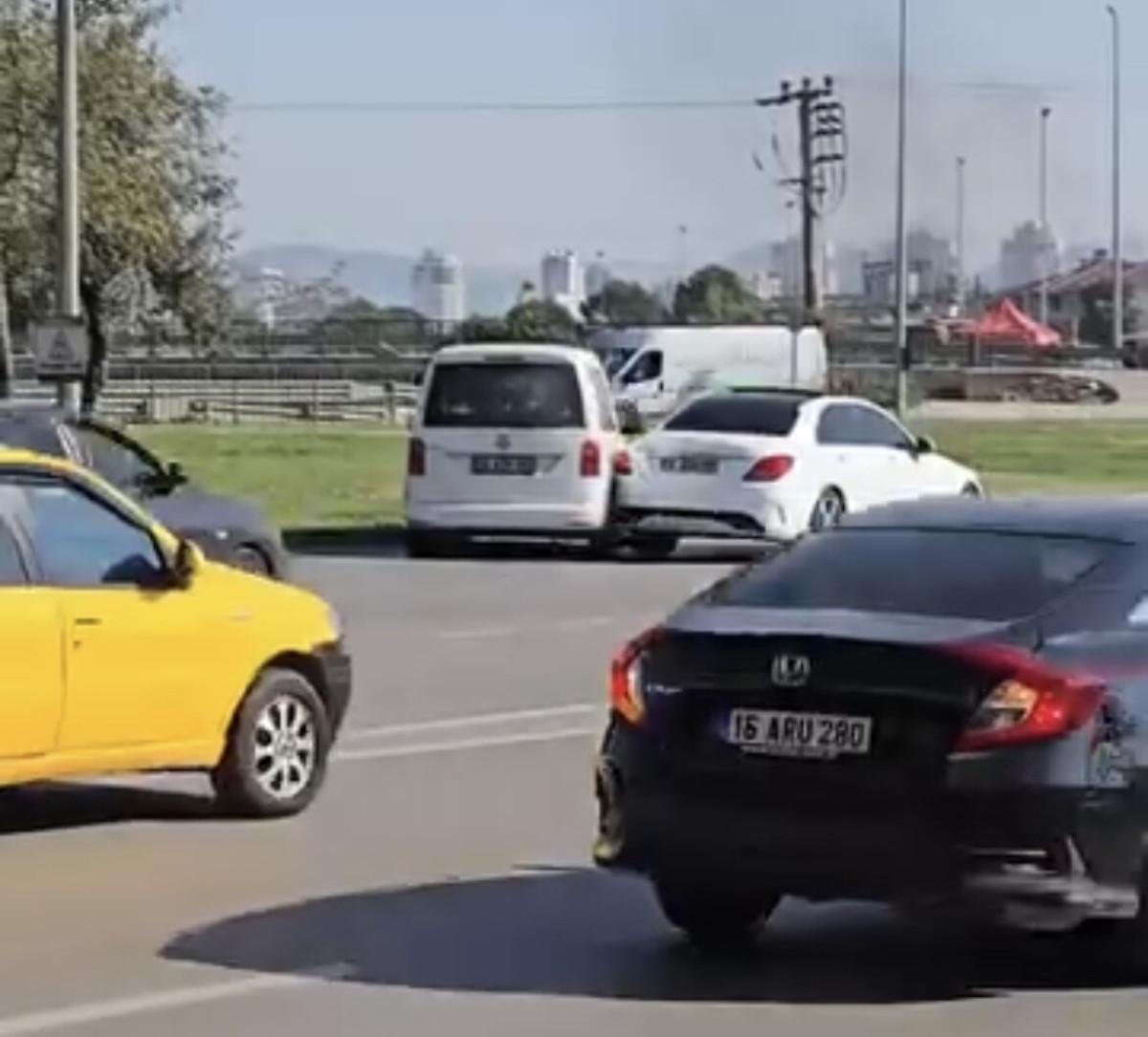 Bursa'nın Osmangazi ilçesi 11 Eylül Bulvarı üzerinde bir sürücünün geri geri ilerlemesiyle kaza kaçınılmaz oldu.