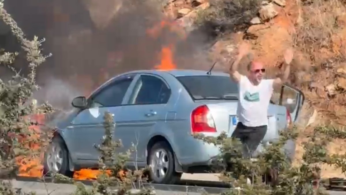 Durumu fark eden sürücü, aracı emniyet şeridine çekerek kendini dışarı attı.