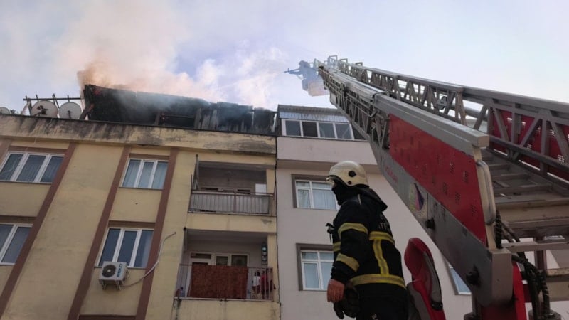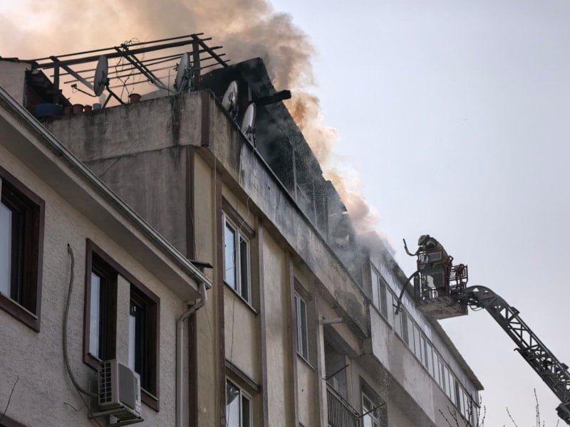 Kısa sürede terası saran alevler, bitişik binada oturan bir kadının çığlık atmasına ve eline aldığı kovayla yardım istemesine neden oldu. Yangın sırasında teras sakini de itfaiye ekiplerinden yardım talep etti.