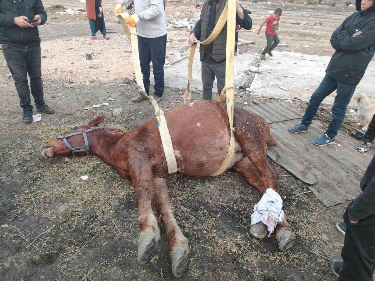 Yaralı atın yaşaması için mücadele veren hayvanseverler ve kurtarma ekipleri büyük üzüntü yaşadı.