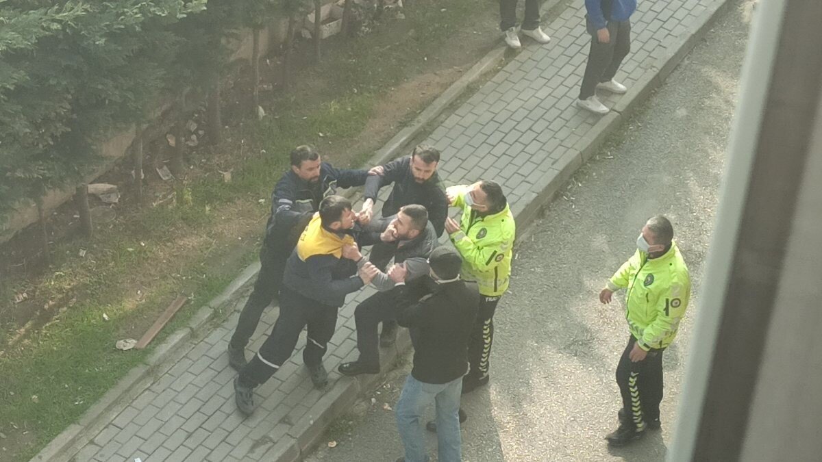 Tekme yumrukların havada uçuştuğu kavga sokağa da taştı. Birbirine giren tarafların kavgası bir vatandaş tarafından kaydedildi.
