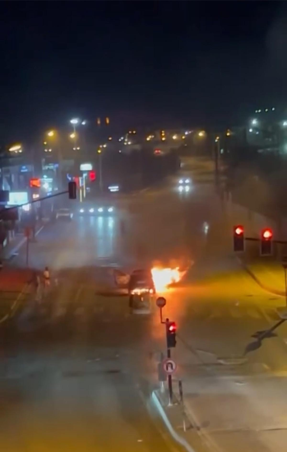 Öte yandan, otomobil sürücüsünün yangın başladıktan sonraki çaresizliği yoldan geçen bir sürücünün kamerasına yansıdı.