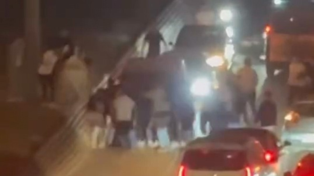 Konvoydaki araçlarda bulunan gençler, otomobillerden inmeye başladı.