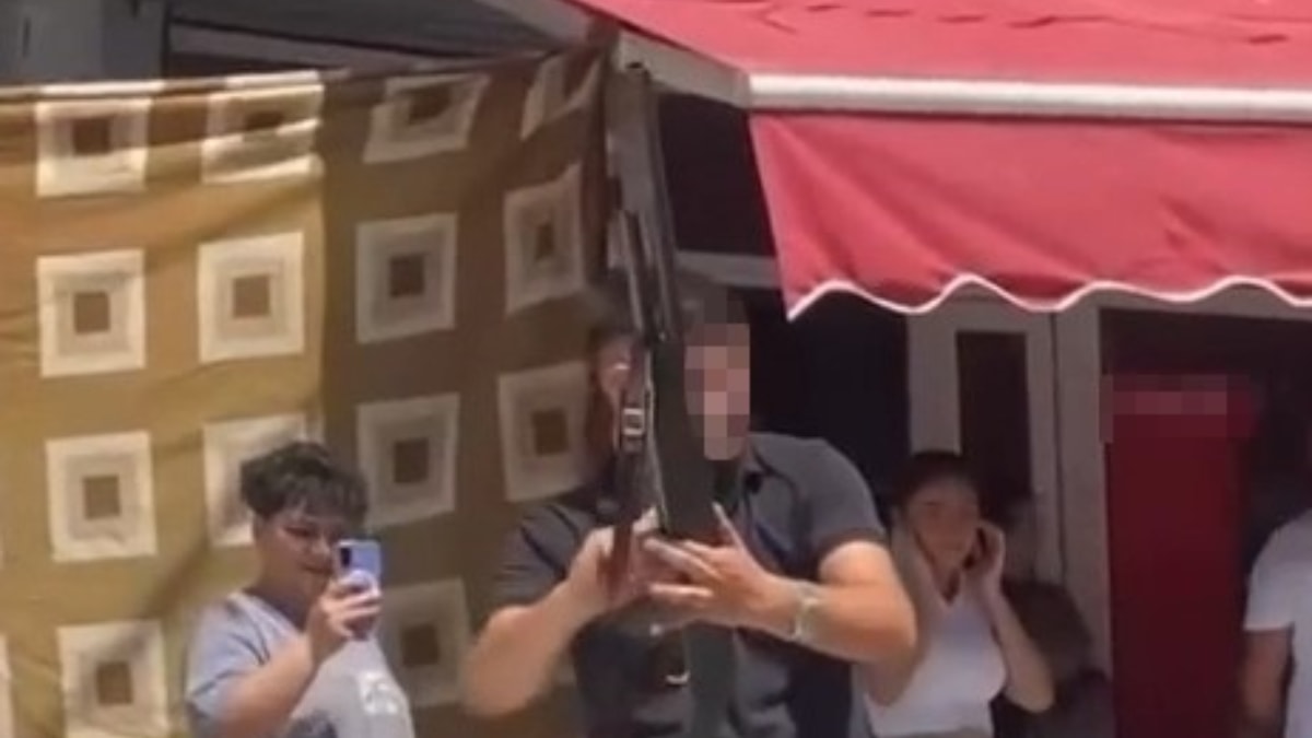 Bursa'nın Osmangazi ilçesinde, asker uğurlaması için bir araya gelen kalabalık, ellerindeki tüfeklerle havaya defalarca ateş açtı.