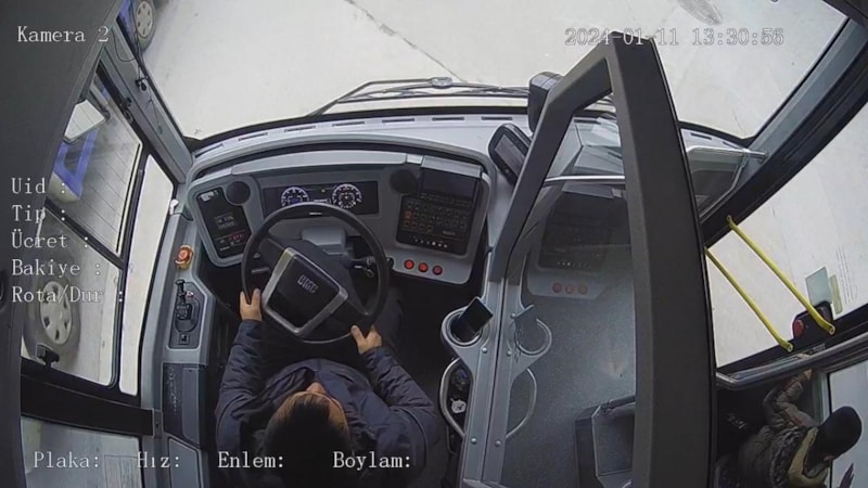 Umut Efe K.'nin otobüste unutulduğu anlar ise araç içi kamerasına yansıdı.