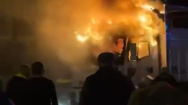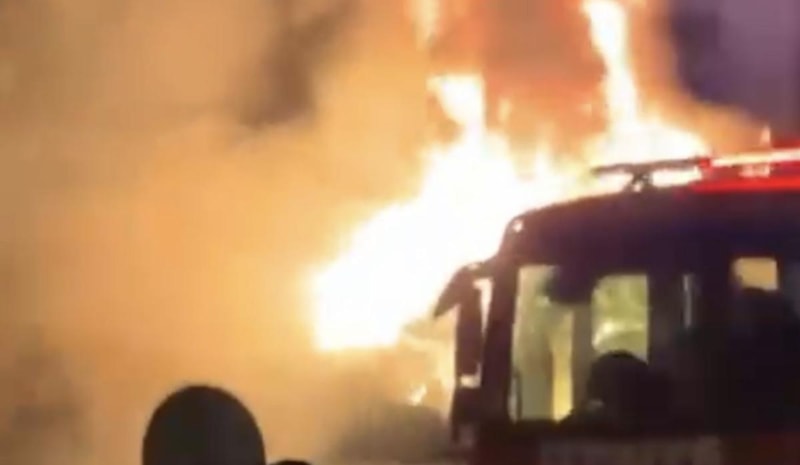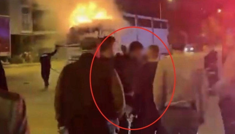 Polis, yangını söndürmek isteyen itfaiye ekiplerine engel olmak isteyen U.C.K.'yi gözaltına aldı.