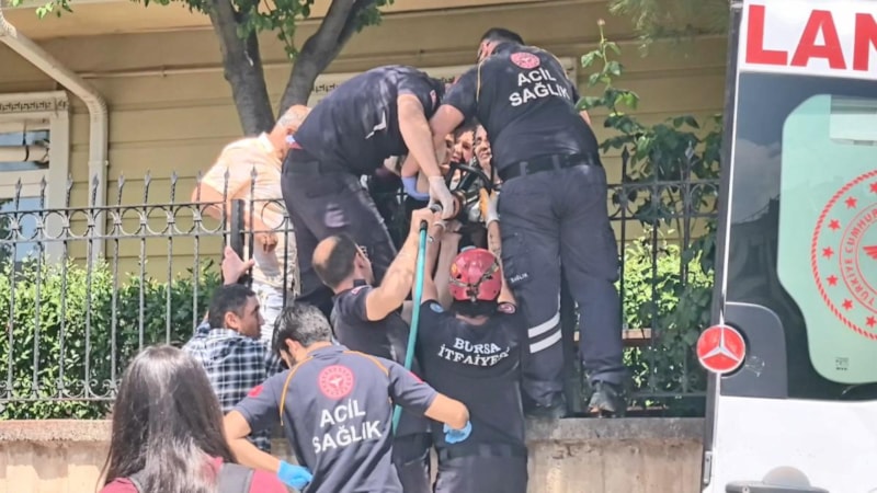 Bursa'nın İnegöl ilçesinde bulunan 3 katlı bir apartmanın bahçesinde oynayan Asaf O., duvardan atlamak isterken sağ bacağına korkuluk demiri saplandı.