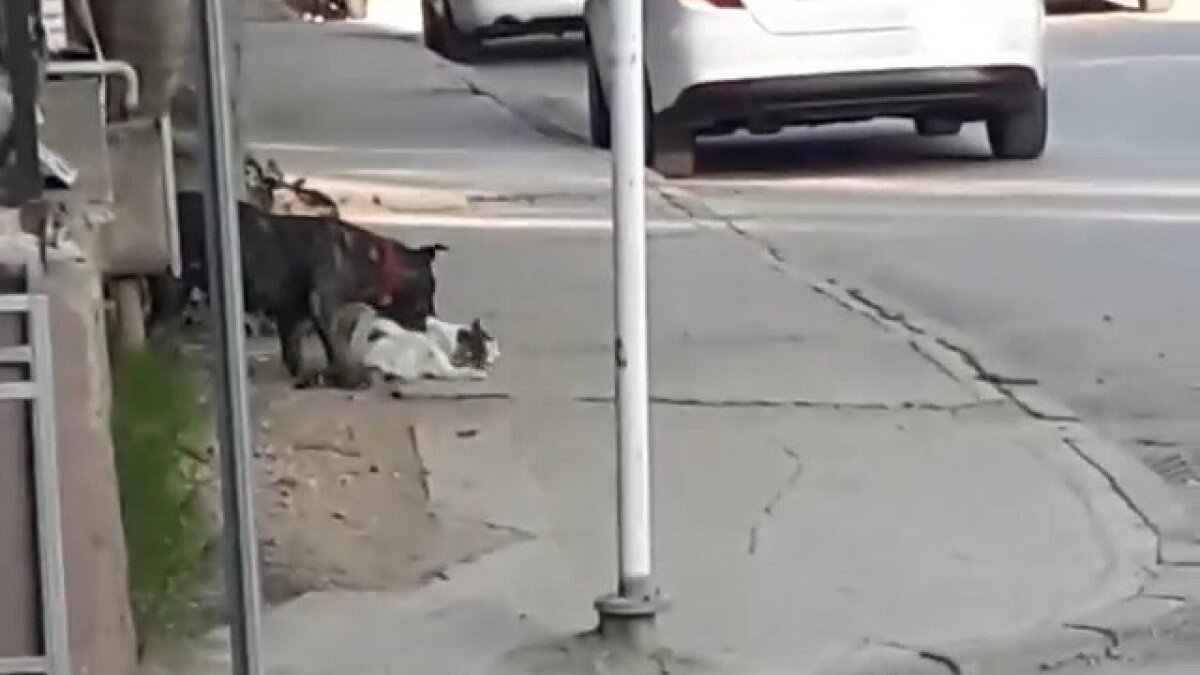 Bursa’nın Nilüfer ilçesi Ataevler Mahallesi'nde bir vatandaşın cep telefonu kamerasına yansıyan görüntülerde başıboş bir pitbull, sokak kedisine saldırdı.