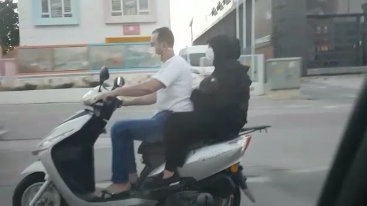 Tehlikeli şekilde seyreden ailenin yolculuğunu gören diğer araç sürücüleri uyarıda bulunsa da, motor sürücüsü baba yoluna devam etti.