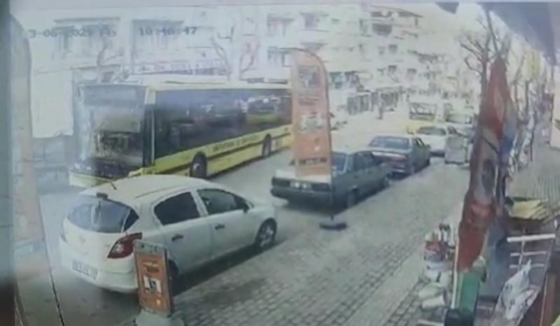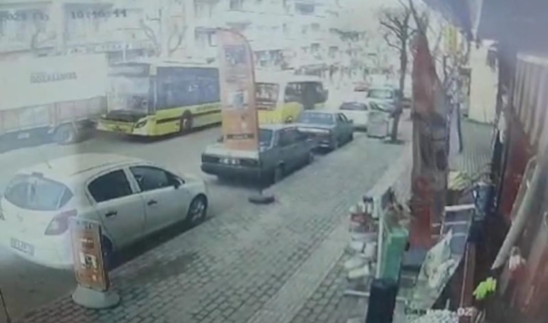 Park halindeki bir kamyona arkadan çarpan otobüs, çarpmaya rağmen gaz kesmeyip kamyonu itmeye devam edince olayda 3 farklı araç daha zarar gördü.