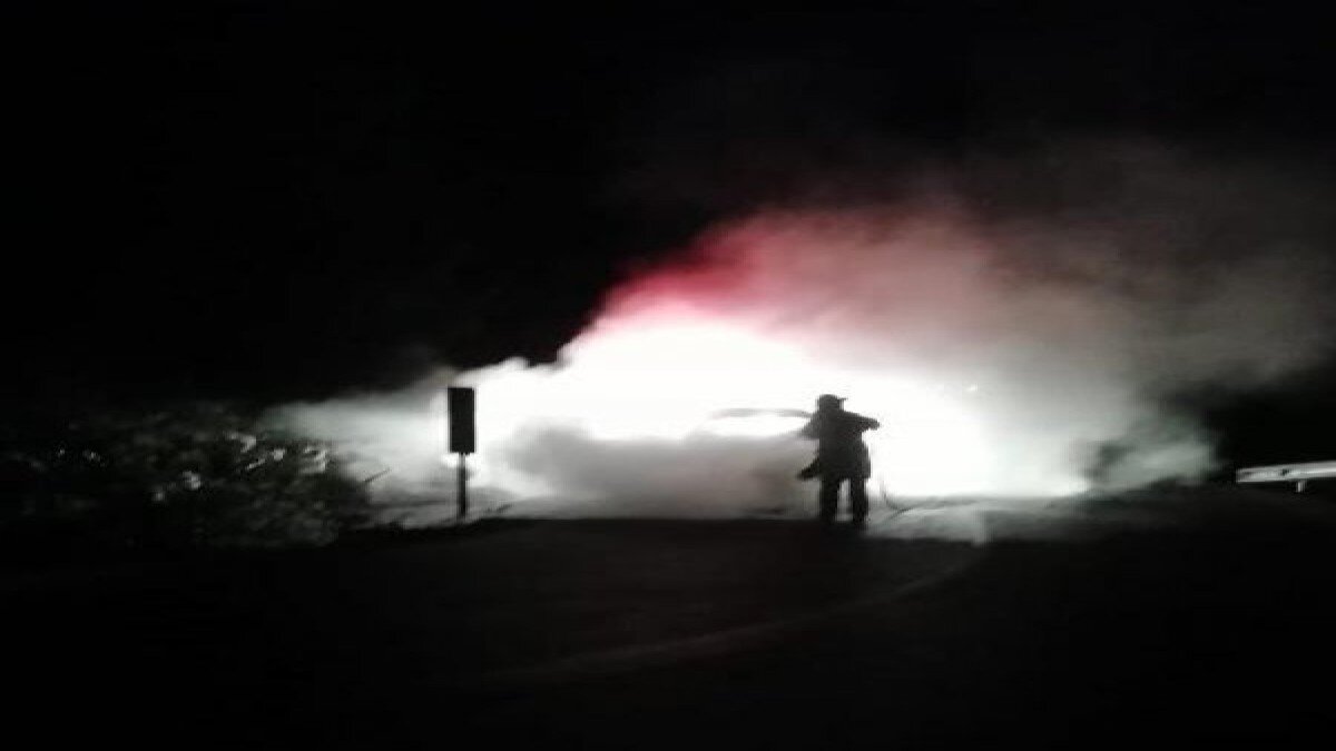 Otomobilini yol kenarına park eden Ok, itfaiyeye haber verdi. İtfaiye ekibi gelene kadar, alevler tüm otomobili sardı.