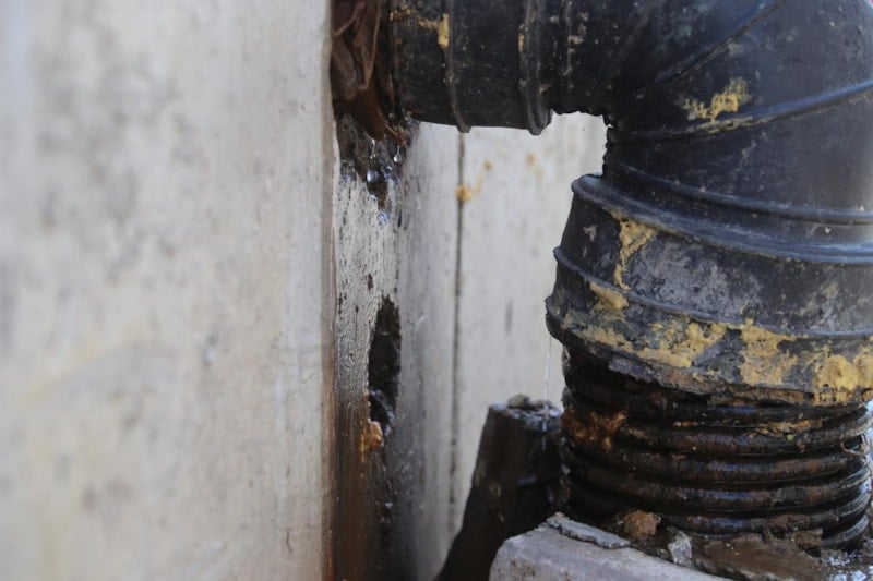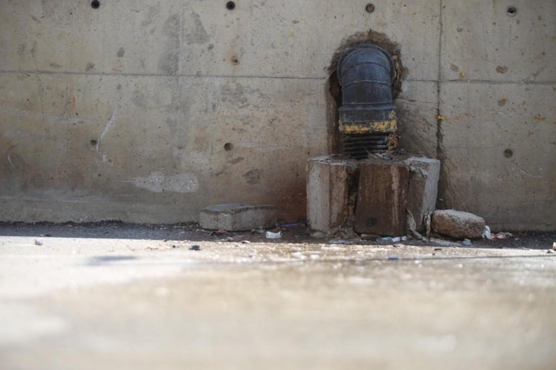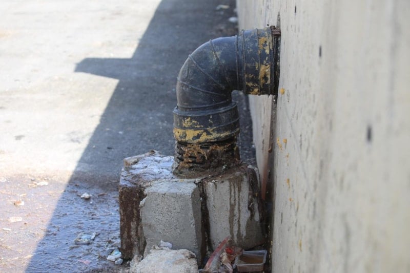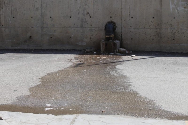 Koku, bir benzinliğin açıkta bulunan foseptik hortumundan yayılıyor ve içindeki sıvı caddeye taşıyor.