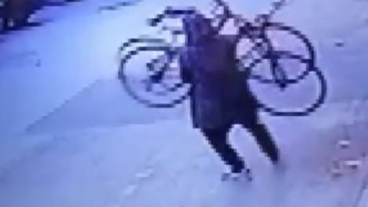 İki şüpheli, sokakta birbirine kilitli şekilde duran bisikleti bir süre izledi. Daha sonra şüphelilerden biri, bisikletleri alarak el arabasına koydu.