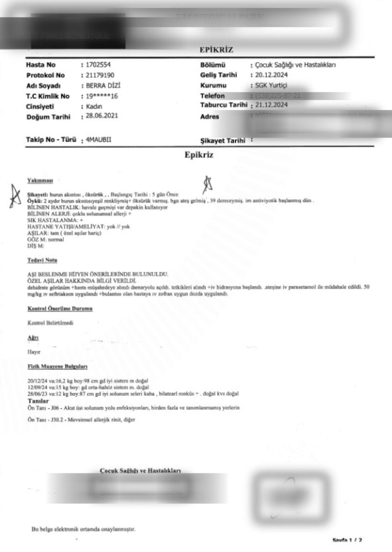 İfade veren okul öğretmenlerinden birinin Berra'nın olaydan 8 ay önce 20 aralık 2024 tarihinde epilepsi nöbeti geçirdiği iddialarının asılsız olduğunu aktaran anne Beyza Turan ise o tarihte kızının epilepsiden değil burun akıntısı ve öksürük şikayetiyle hastaneye kendisinin götürdüğünü hastanede soğuk algınlığına bağlı tedavi gördüğünün belgeleriyle sabit olduğunu aktardı.