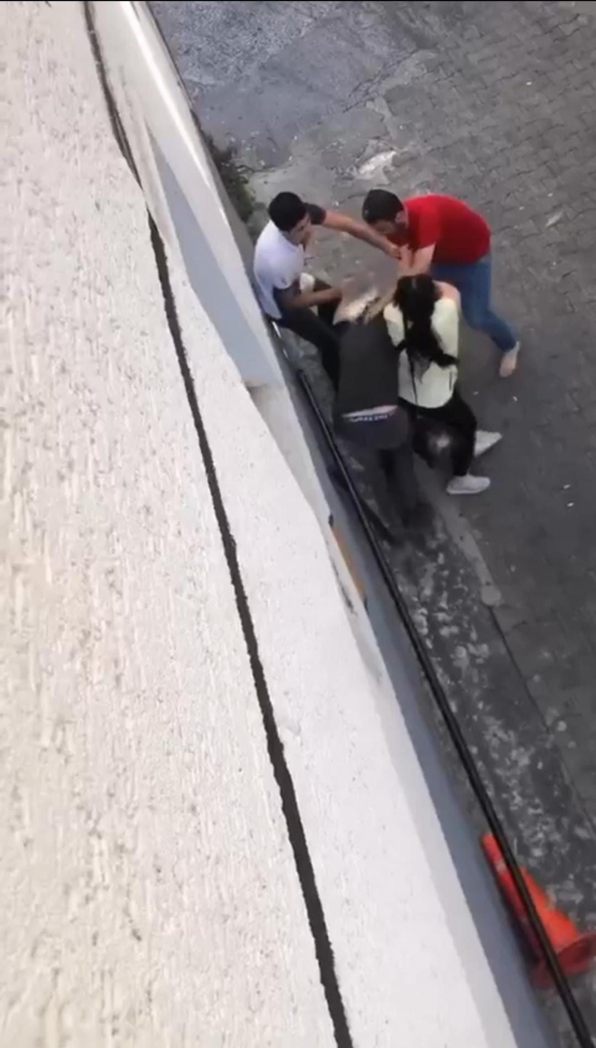 Sokak ortasında birbirlerine giren taraflar tekme ve yumruklarla birbirlerine vurdu. Çevredekilerin güçlükle ayırdığı kavga kameraya saniye saniye yansıdı.