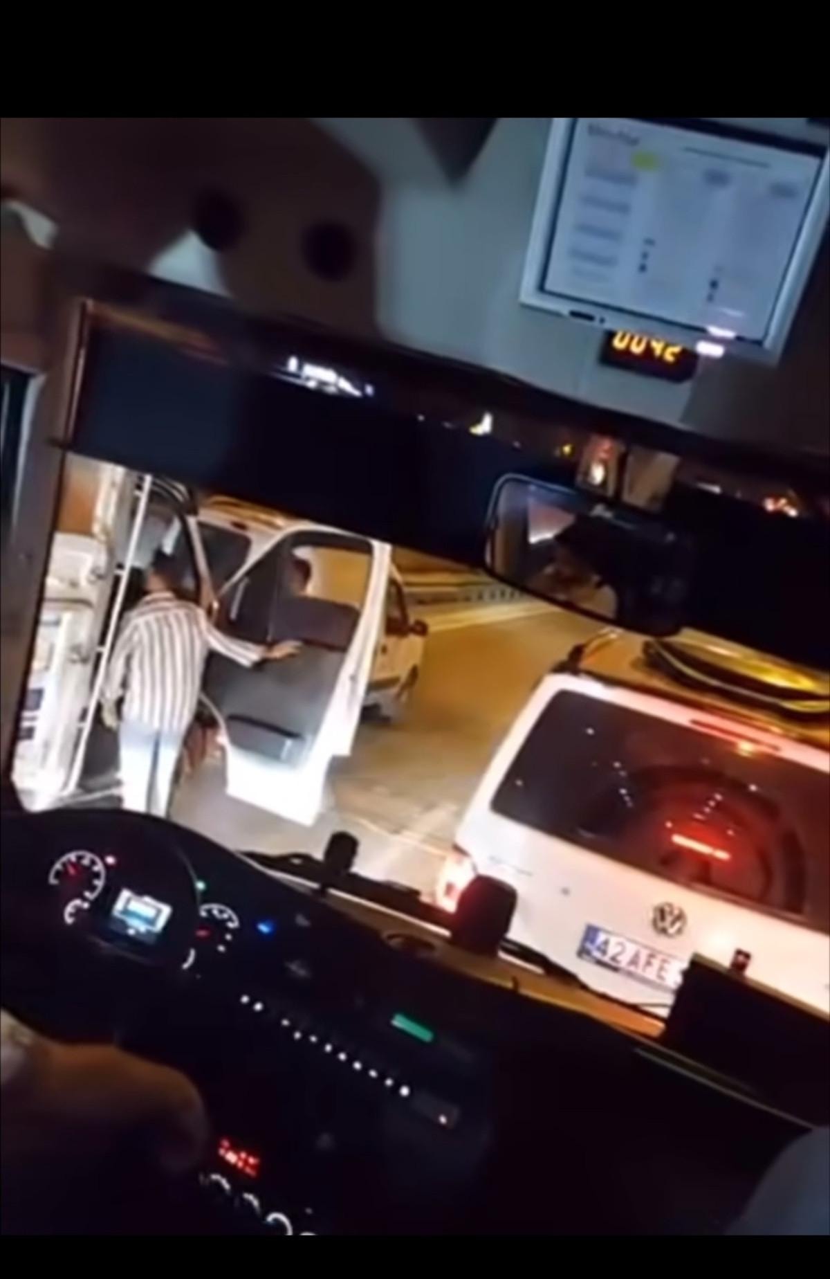 Bir süre trafikte tartışan sürücüler daha sonra durarak kavgaya tutuştu. Birbirlerine saldıran sürücüleri vatandaşlar ayırdı.
