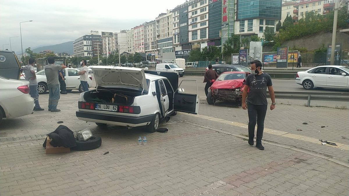 Bursa'nın Nilüfer ilçesinde meydana gelen kazada, Enis Şenbaba yönetimindeki otomobil, sürücüsünün direksiyon hakimiyetini kaybetmesiyle yolun dışında arızalanan ve sahibi Ufuk Uzun'un ittiği otomobile çarptı.