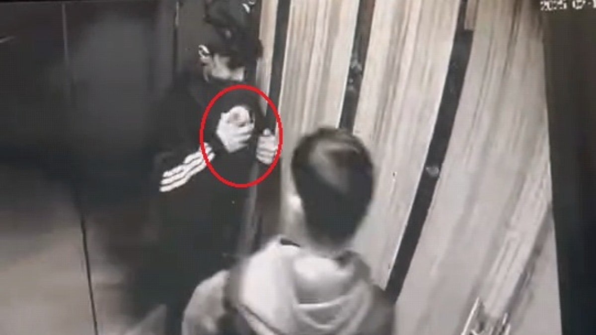 Şüpheliler, asansöre binip izlerini kaybettirirken, olayla ilgili polis incelemesi devam ediyor.