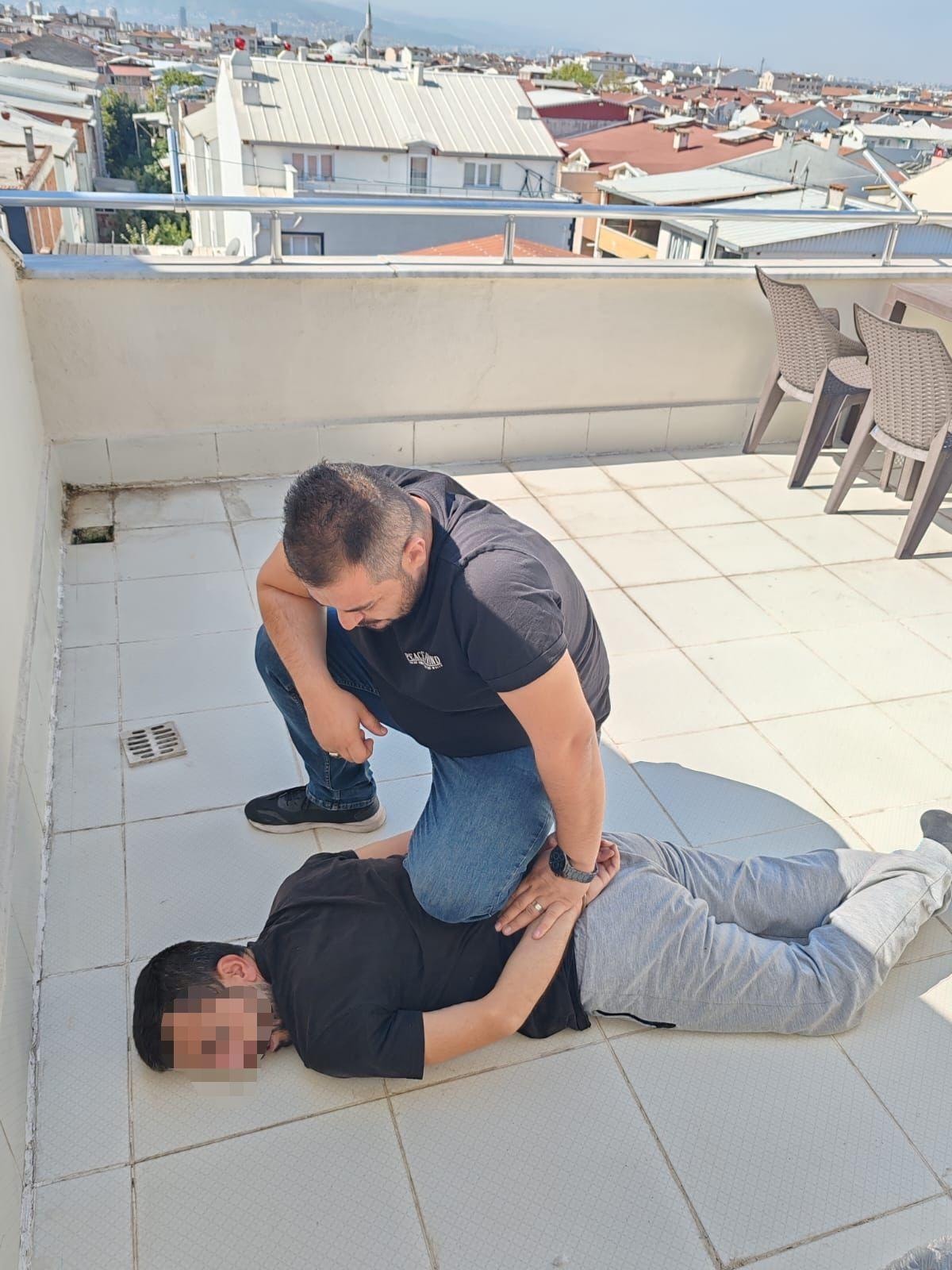 Bursa'da aranan şahıslara yönelik gerçekleştirilen operasyon sırasında filmlere sahne olacak anlar yaşandı.