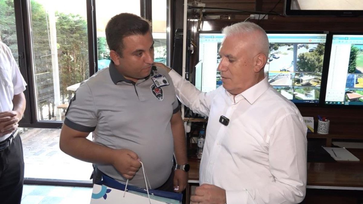 Kahramanca müdahalesiyle takdir toplayan Mercan, Bursa Büyükşehir Belediye Başkanı Mustafa Bozbey tarafından ziyaret edilerek ödüllendirildi.