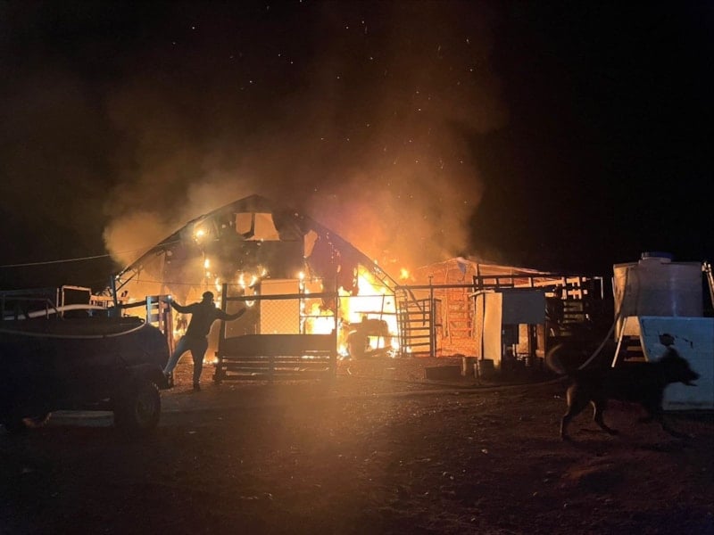 Yangın nedeniyle çiftlik kullanılamaz hale gelirken, yangının çıkış nedeniyle ilgili inceleme başlatıldı.
