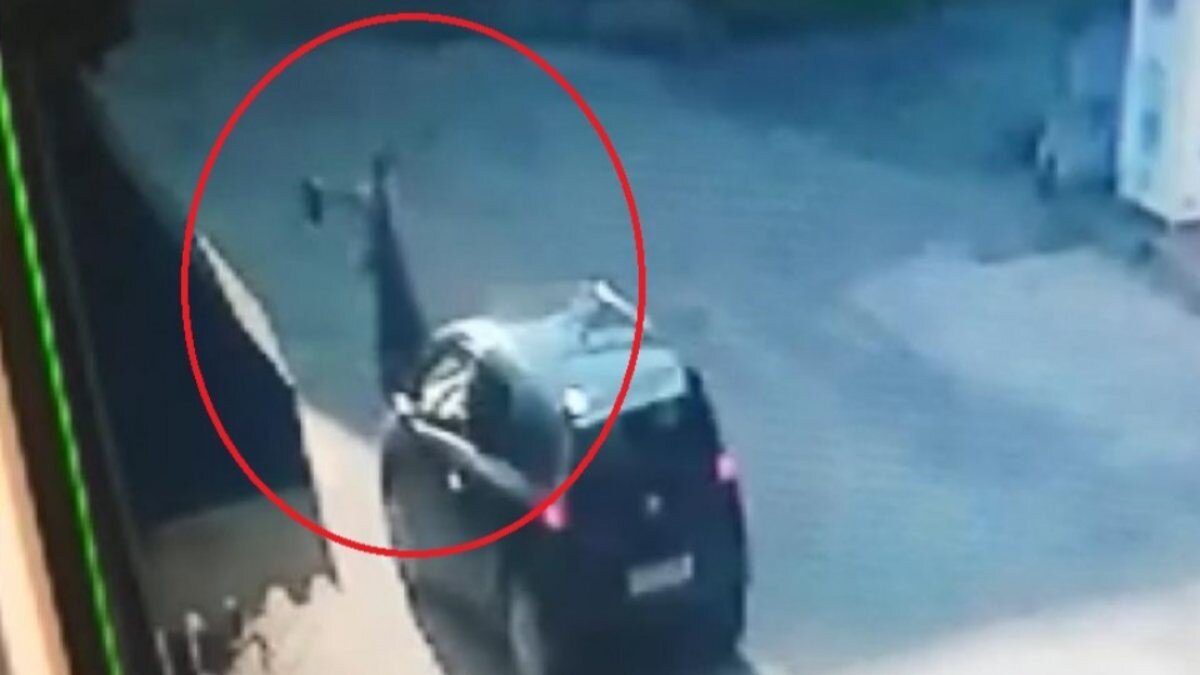 Kaza anı ise bir iş yerinin güvenlik kamerasına yansıdı.