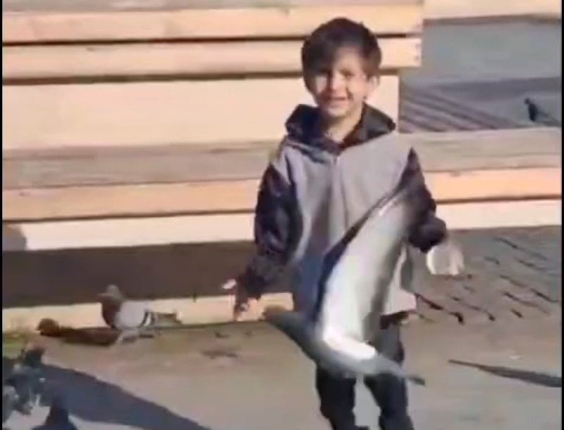Görüntülerde, Serhat’ın sahil bandında güvercinleri beslediği ve kuşların arasında dolaştığı anlar yer aldı.